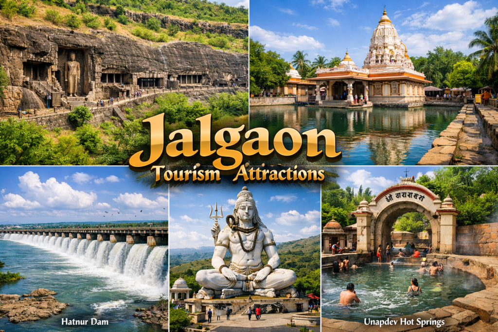 For history lovers, pilgrims, and nature enthusiasts. From the timeless art of the Ajanta Caves to the calming waters of Hatnur Dam and Unapdev Hot Springs, every place offers a unique experience. Jalgaon’s tourism reflects the district’s rich heritage, spiritual depth, and scenic charm, leaving visitors with memorable experiences and a desire to return.